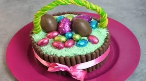 Самым интересным этапом является оформление. Для этого шоколад растапливается, кулич обмазывается им, а по бокам прикрепляются шоколадные печенья. Завершить украшение можно с помощью окрашенной кокосовой стружки и декоративных шариков.