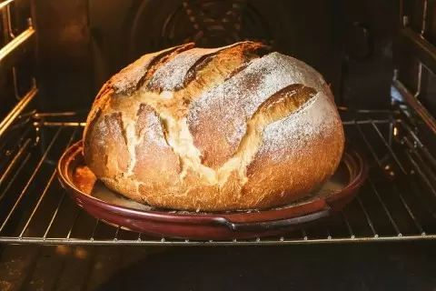 Обомните тесто и сформируйте из него один большой или два небольших каравая. Пусть они подойдут еще 1,5-2 часа, затем разогрейте духовку до 230°C. Выпекайте хлеб под "куполом" 15 минут, затем без него еще 15 минут. Такой подход обеспечит тонкую, хрустящую корочку и идеальную текстуру.