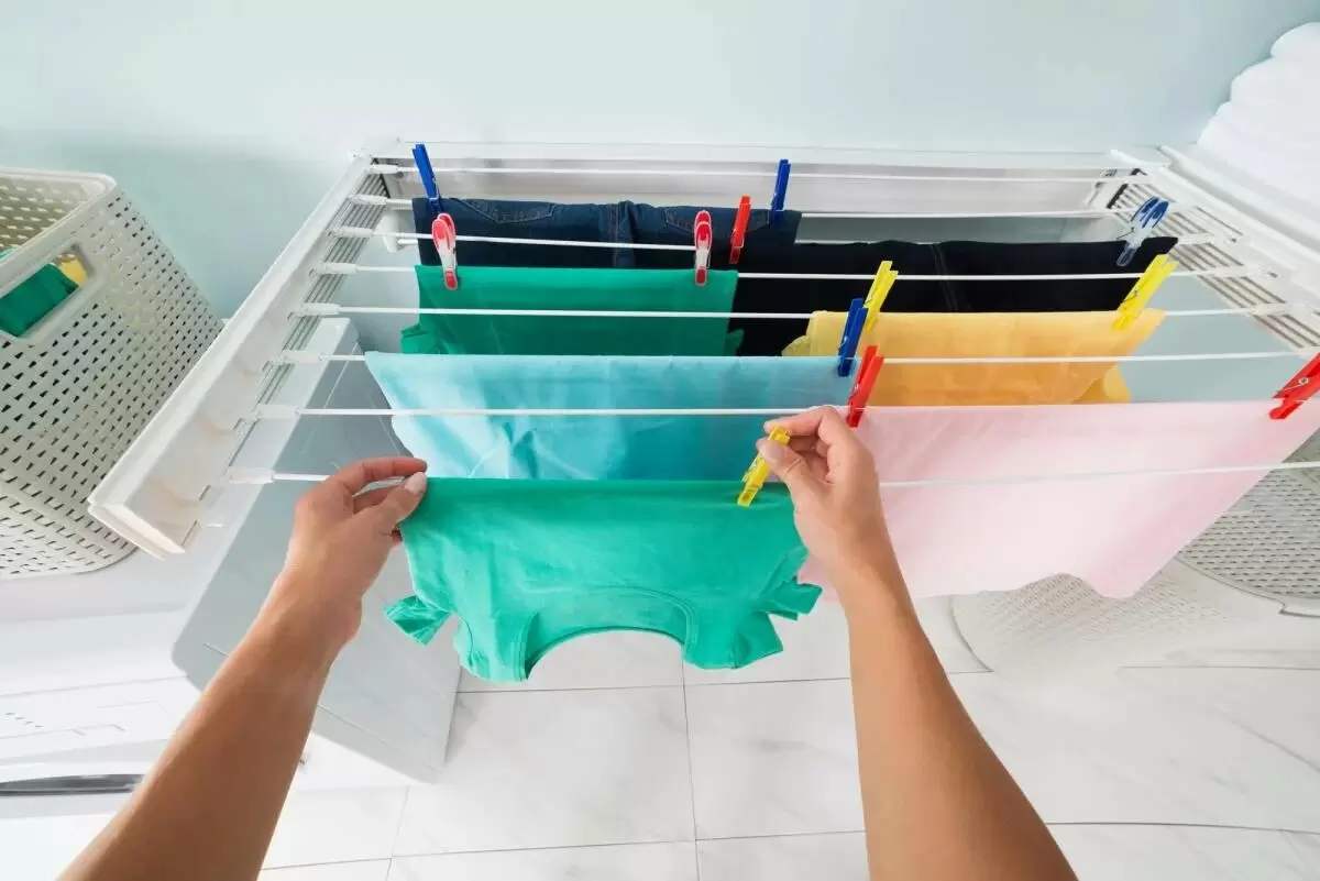 По словам Рассел, ключ к успешной сушке — это аккуратная и не слишком плотная укладка одежды. Важно, чтобы пространство между вещами позволило воздуху свободно циркулировать. Для этого она рекомендует разместить вентилятор в непосредственной близости от сушащихся вещей.