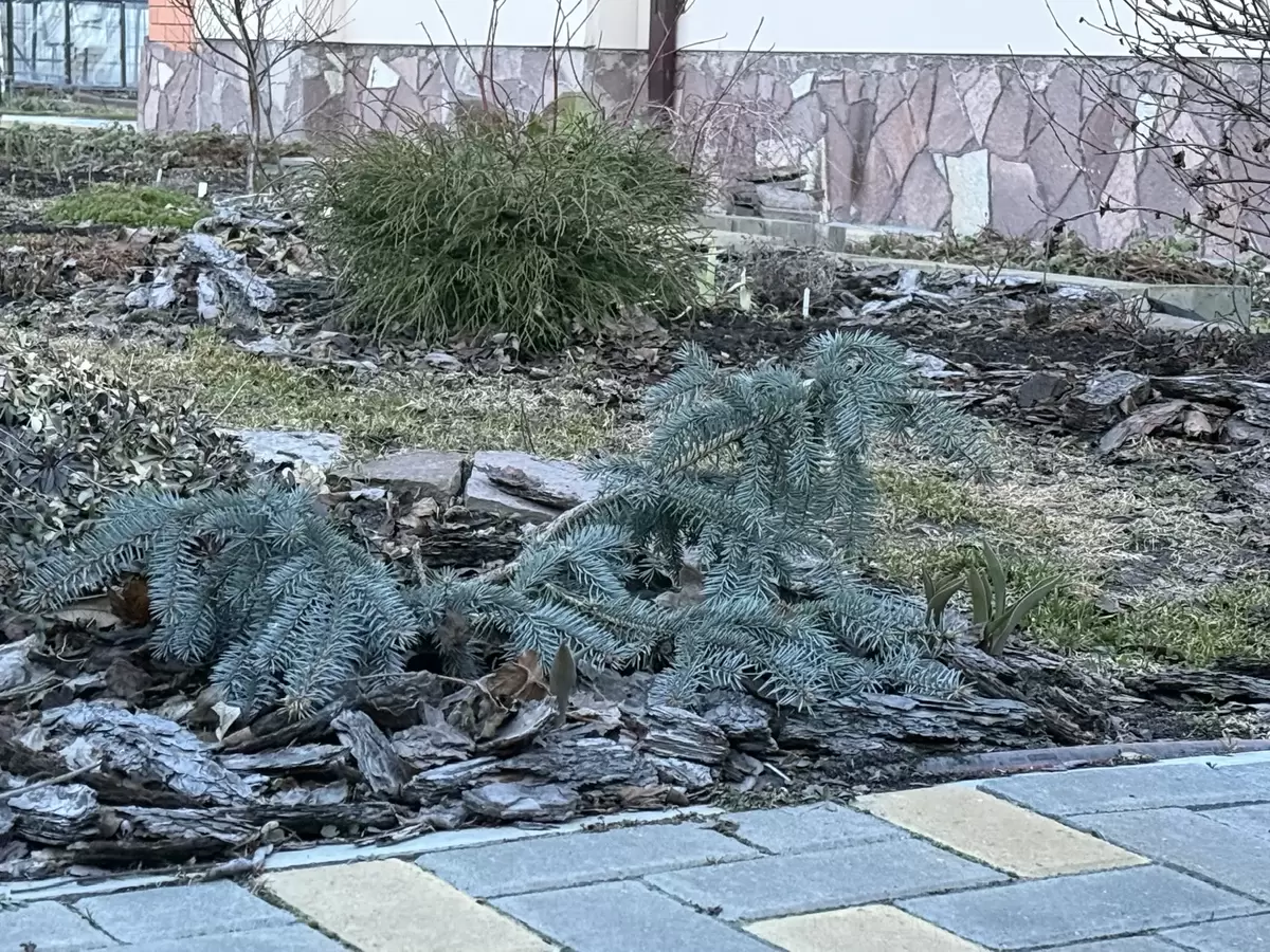 Подсобирая информацию о росте, можно сказать, что ель растет медленно. Саженец был посажен в летний период 2023 года в надежде функционально отделить зону парковки от остальной части сада, сохранив при этом открытый вид.