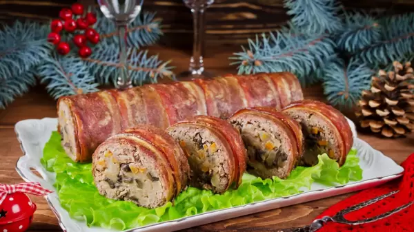Мир рулетов безграничен, и в этом разнообразии каждый может найти что-то по своему вкусу. Этот раз интересный кулинарный эксперимент предлагает приготовить изысканный рулет из фарша индейки, дополненный нежным картофельным пюре и ароматными жареными шампиньонами, всё это завернуто в хрустящий слой бекона. Такой рецепт не только станет настоящим украшением стола, но и удивит гостей своим вкусом и презентацией!
