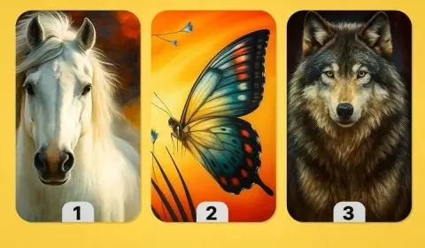 На изображении представлены три символа: лошадь, бабочка и волк. Внимательно посмотрите на каждую картинку. Какое из этих животных наилучшим образом соответствует вашему внутреннему состоянию? Ваш выбор откроет двери к личным инсайтам и полезным рекомендациям.