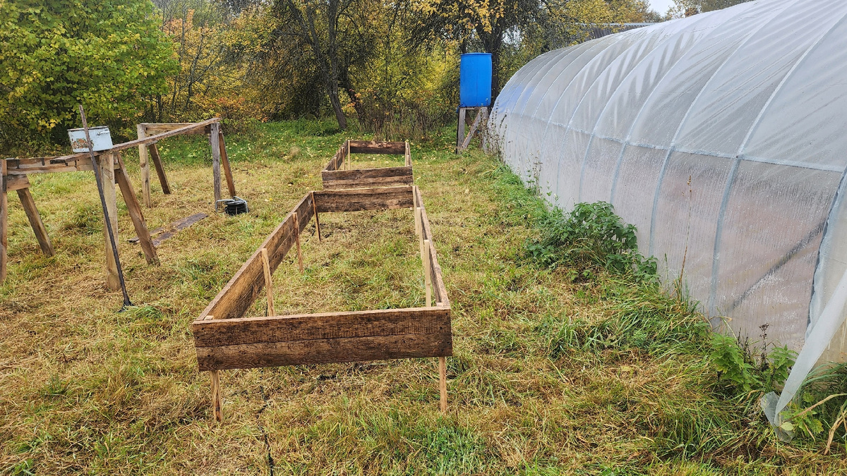 Процесс создания высоких грядок начинается с выборки качественного материала. Для данного проекта идеально подходят сосновые доски и брусья, которые закладываются в углах и по центру каждой длинной стороны для дополнительной прочности. В результате получается каркас с «ножками», которые будут углублены в землю для устойчивости.