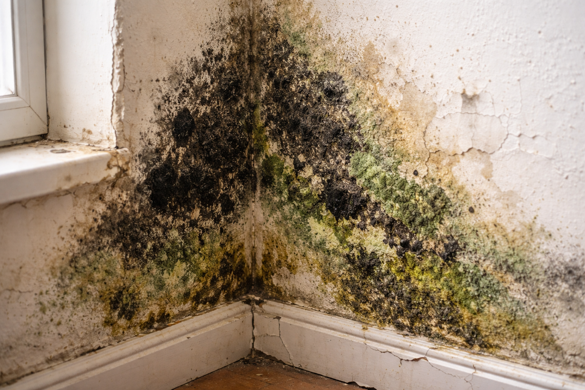 Конденсат формируется, когда тёплый влажный воздух соприкасается с холодными поверхностями. Часто это происходит в углах и на откосах окон. Регулярная проверка вентиляционных систем помогает предотвратить размножение плесени.