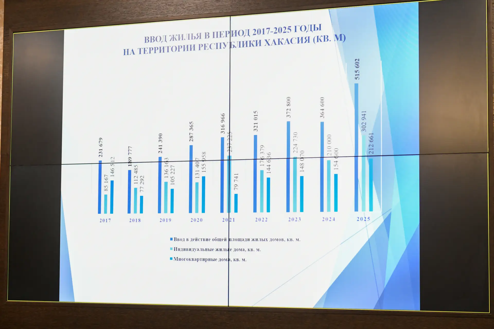 Хакасия сохраняет рост в сфере жилищного строительства. По итогам 2025 года в республике введено почти 516 тыс. кв. м жилья. Это на 41 % больше уровня 2024 года и значительно выше показателя, установленного для региона.