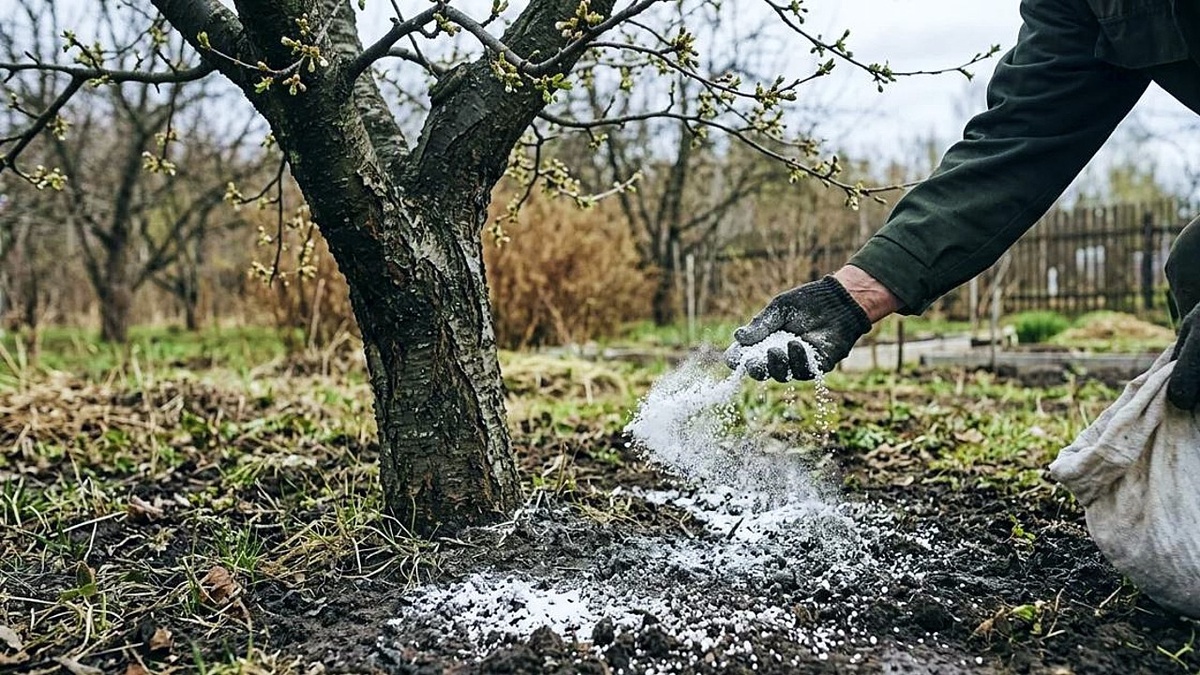 Внести удобрение можно, равномерно распределив смесь в круге вокруг ствола дерева, отступив при этом около 20 см от него, чтобы избежать ожога корневой шейки. Норма внесения составляет 2–3 стакана под каждое дерево, но следует корректировать количество в зависимости от возраста и размера вишни: для молодых саженцев подойдет меньшая норма, тогда как взрослым деревьям иногда требуется больше удобрений.