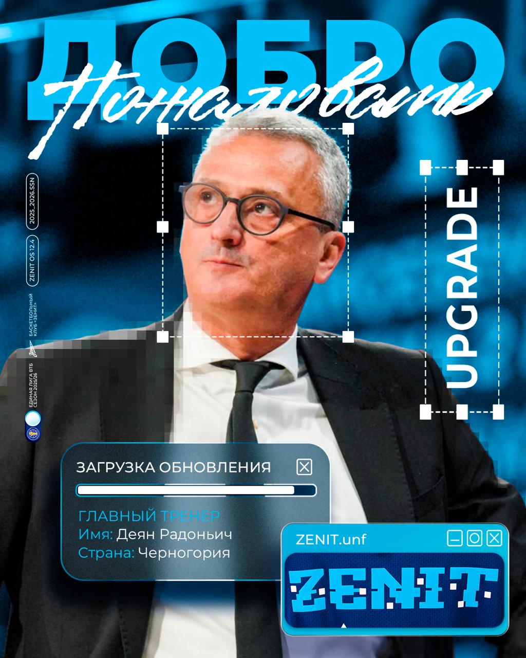 БК «Зенит» объявил о назначении Деяна Радоньича новым главным тренером основной команды.